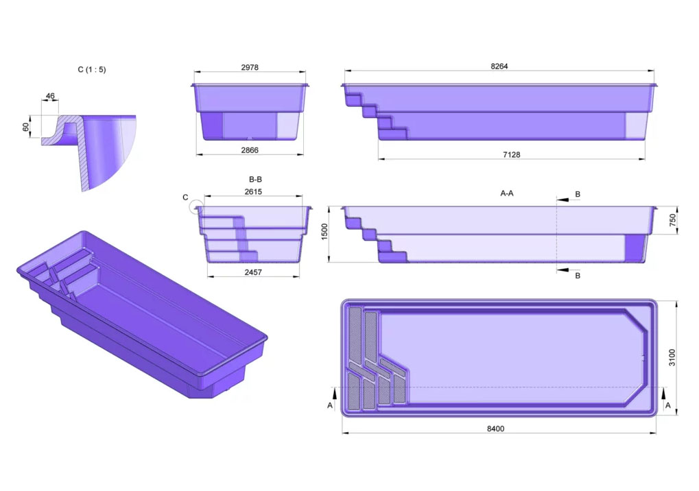Basen Fiji jest gwarancją niezapomnianych momentów w gronie rodziny i znajomych. Basen poliestrowy zapewnia wypoczynek po ciężkim dniu pracy oraz poprawia samopoczucie a także przynosi ulgę w wielu przypadłościach zdrowotnych. Dzięki zastosowaniu nowoczesnych rozwiązań (stopień spoczynkowy) zapewniają one wyjątkową przyjemność z użytkowania również dla najmłodszych.