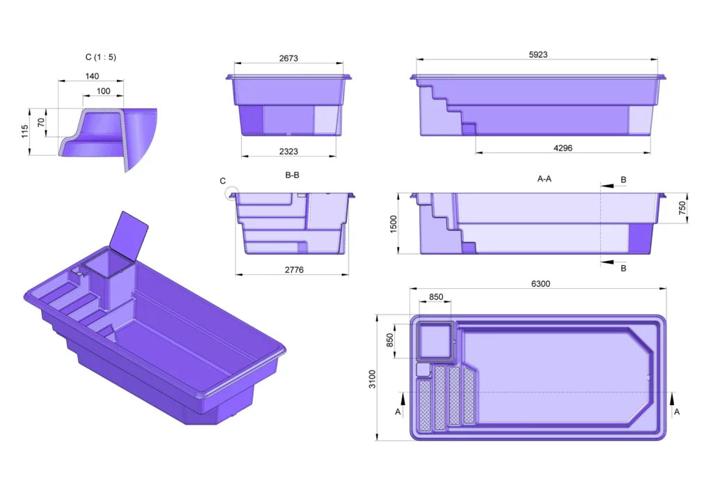 Basen Miami jest gwarancją niezapomnianych momentów w gronie rodziny i znajomych z dodatkowymi miejscami do siedzenia dają komfort i wypoczynek. Basen poliestrowy zapewnia wypoczynek po ciężkim dniu pracy oraz poprawia samopoczucie a także przynosi ulgę w wielu przypadłościach zdrowotnych. Dzięki zastosowaniu nowoczesnych rozwiązań (stopień spoczynkowy) zapewniają one wyjątkową przyjemność z użytkowania również dla najmłodszych.