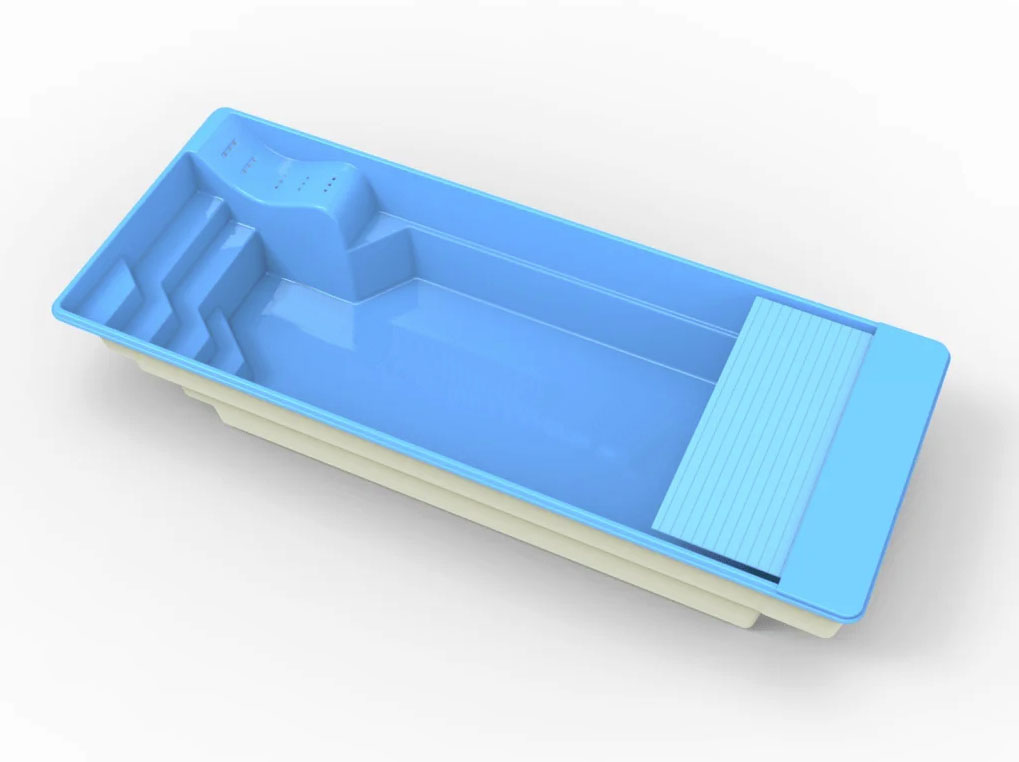 Jedyny basen poliestrowy z leżanką i zamontowaną podwodną roletą zapewniająca ochronę przed nieczystościami. Pełen pakiet, pełna ochrona naszego basenu. Prostokątny, nowoczesny kształt. Układ stopni zapewnia komfort i bezpieczeństwo, a dodatkowa leżanka pomoże się zrelaksować i poczuć jak we własnym spa. Niecka podobnie jak pozostałe modele daje duże możliwości doposażenia w atrakcje wodne m.in przeciwprąd. Zastosowanie efektownych narożnych schodów zdecydowanie podkreśla walory użytkowe, ich rozmiary nie zabierają dużo z powierzchni do pływania, a ich antypoślizgowa powierzchnia zapewni komfort i bezpieczeństwo kąpiących. Dodatkowo niecka wyposażona jest w trzy siedziska, dwa na krótszej ścianie i jedno zaraz przy schodach.