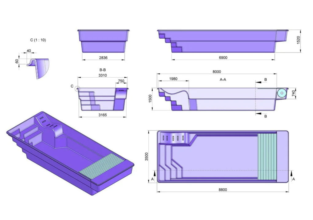 Basen Swim Comfort jest gwarancją niezapomnianych momentów w gronie rodziny i znajomych. Jedyny model z leżanką i zamontowaną roletą podwodną. Basen poliestrowy zapewnia wypoczynek po ciężkim dniu pracy oraz poprawia samopoczucie a także przynosi ulgę w wielu przypadłościach zdrowotnych. Dzięki zastosowaniu nowoczesnych rozwiązań (stopień spoczynkowy) zapewniają one wyjątkową przyjemność z użytkowania również dla najmłodszych.