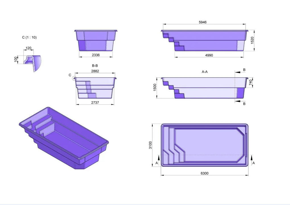Basen Tinos jest gwarancją niezapomnianych momentów w gronie rodziny i znajomych. Basen poliestrowy zapewnia wypoczynek po ciężkim dniu pracy oraz poprawia samopoczucie a także przynosi ulgę w wielu przypadłościach zdrowotnych. Dzięki zastosowaniu nowoczesnych rozwiązań (stopień spoczynkowy) zapewniają one wyjątkową przyjemność z użytkowania również dla najmłodszych.