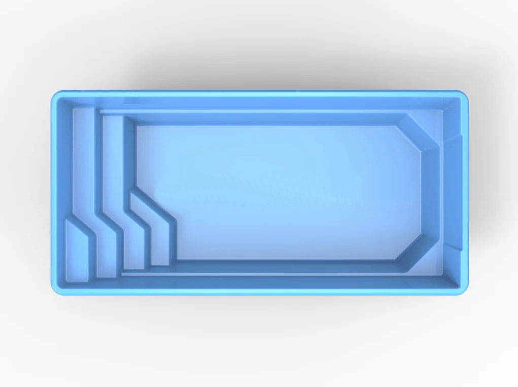 Basen ogrodowy bardzo wysokiej jakości. Klasyczny prostokątny kształt, ze schodkami w jednym z rogów basenu zapewni komfort pływania na większej przestrzeni. Niecka podobnie jak pozostałe modele daje duże możliwości doposażenia w atrakcje wodne m.in przeciwprąd. Zastosowanie efektownych schodów prostokątnych zdecydowanie podkreśla walory użytkowe, ich rozmiary nie zabierają dużo z powierzchni do pływania, a ich antypoślizgowa powierzchnia zapewni komfort i bezpieczeństwo kąpiących. Dodatkowo niecka wyposażona jest w dwa siedziska na krótszej ścianie.