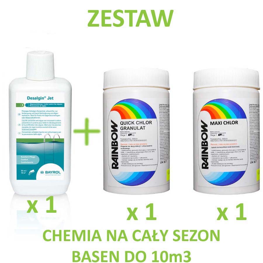 Zestaw chemii basenowej dla utrzymania czystości w basenie Starter Set. Jest to komplet chemii na cały sezon letni dla basenu o pojemności do 10m3 wody.