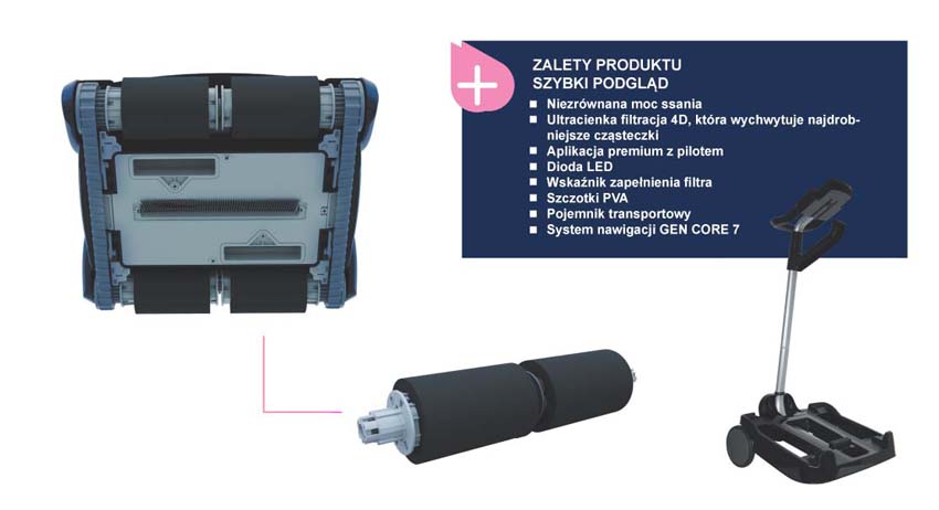 Ten zaawansowany system, w połączeniu z precyzją naszego systemu nawigacyjnego Gen Core 7, optymalizuje ruchy robota w basenie, zapewniając nieskazitelną czystość za każdym razem.
