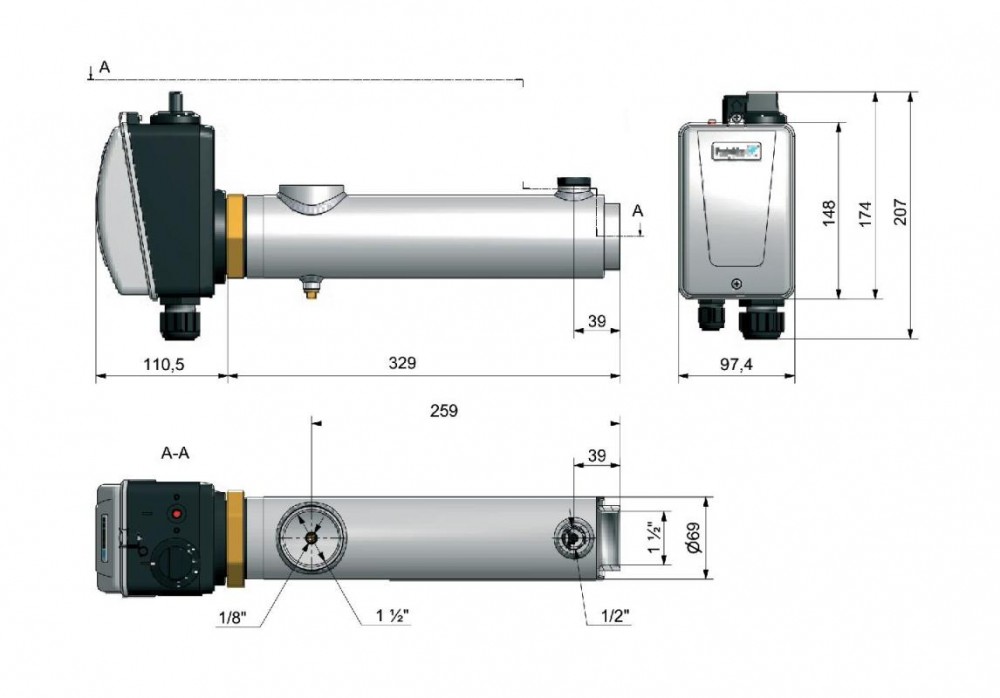 Elektryczny pogrzewacz wody o mocy 6kW Pahlen. Obudowa wykonana ze stali AISI-316L. Element grzewczy stanowią specjalne pręty grzewcze. W komplecie z elektrycznym podgrzewaczem wody Pahlen znajduje się:
