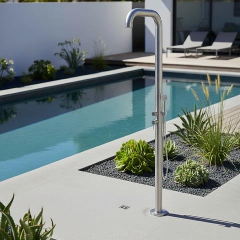 Prysznic basenowy Santos marki Ideal Eichenwald łączy nowoczesny, ponadczasowy design z wysokiej jakości materiałami. Idealnie nadaje się do ogrodów, tarasów i stref basenowych. Wykonany z wytrzymałej stali nierdzewnej V4A, ten prysznic zewnętrzny zachwyca eleganckim wyglądem i harmonijnie komponuje się z każdą aranżacją na świeżym powietrzu, a jednocześnie charakteryzuje się długotrwałą odpornością na korozję. Ideal Eichenwald to renomowany producent wysokiej jakości pryszniców ze stali nierdzewnej, oferujący produkty o zaawansowanej funkcjonalności, zarówno do przestrzeni prywatnych, jak i publicznych.