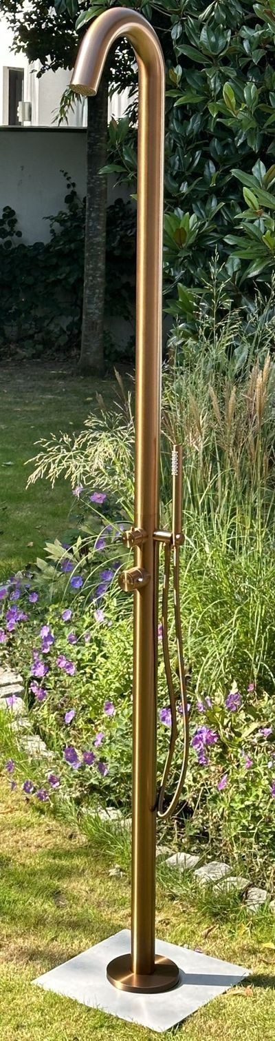 Prysznic basenowy Sylt Rose Gold w kolorze różowego złota, z baterią prysznicową do spłukiwania ciała